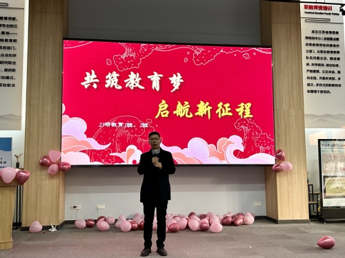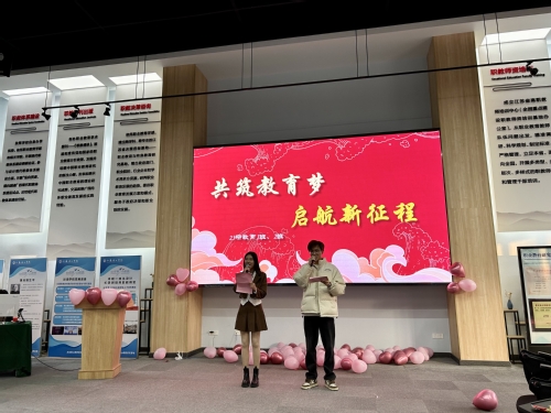 1月11日下午,炎培学院“共筑教育梦,启航新征程”主题联欢晚会在职师展馆隆重举行。学院教师与2023级教育硕士共赏炎培“春晚”,晚会由研究生陆佳辉、陈佳妮主持。