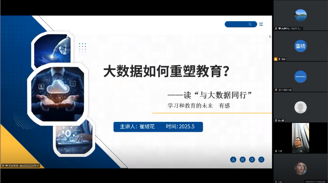 江苏省职业教育朱延庆网络技术名师工作室团队成员围绕书中理论与教学实践展开多元分享。江苏省职业教育张志凯混合教学设计创新双师型名师工作室成员于明珠老师,带来《<与大数据同行:学习和教育的未来>读书心得》专题分享。