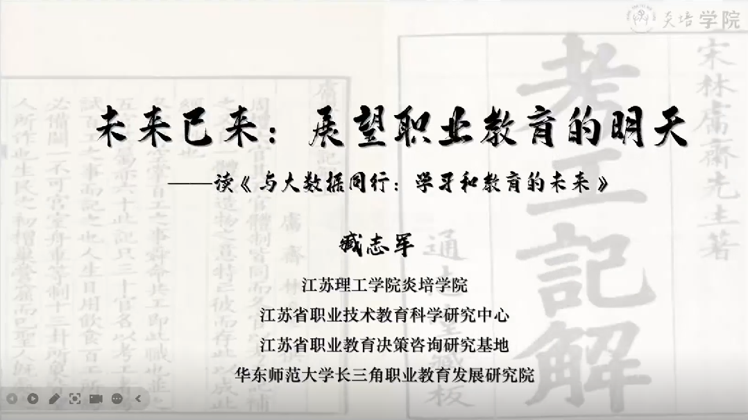 5月18日晚七点,新职业教育社群2025年第二期共读《与大数据同行:学习和教育的未来》开营活动顺利开展。多位来自全国各地职业院校的专家学者、教育工作者相聚云端,围绕大数据与职业教育融合主题展开深度交流,共同展望职业教育的未来图景,本次共读活动由炎培学院院长臧志军担任专家导读嘉宾。