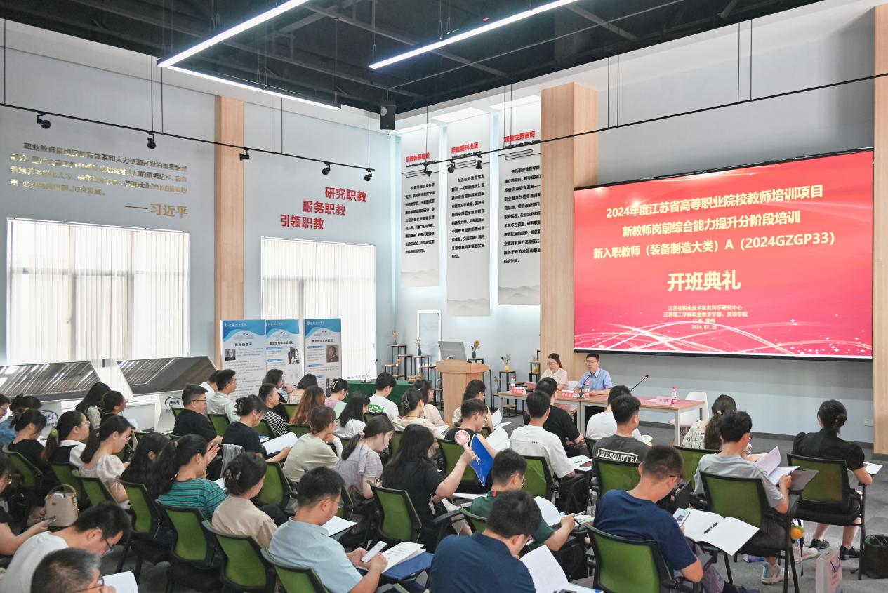 2024年7月25日上午,由江苏理工学院炎培学院承办的“2024年度江苏高职新教师岗前综合能力提升分阶段培训”开班典礼在江苏理工学院职教展馆举行。江苏理工学院炎培学院副院长郝永贞副研究员、江苏理工学院炎培学院孙建波副教授以及来自全省各高职院校的50名学员参加了开班典礼。开班典礼由孙建波主持。