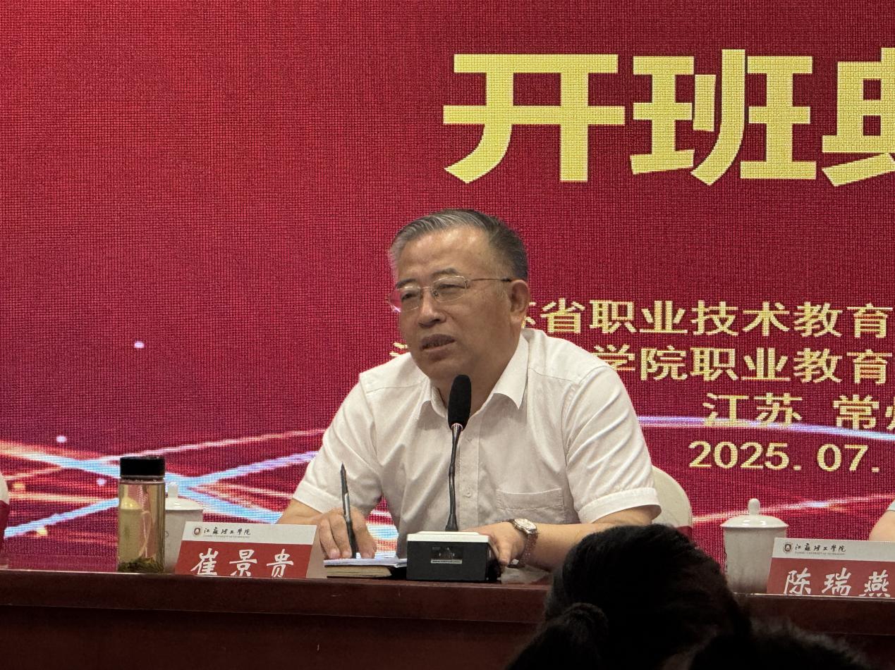 2025年7月10日上午,由江苏理工学院炎培学院举办的“新入职教师教育教学能力提升A”培训班在常州顺利开班。校党委书记崔景贵、全国重点建设职业教育师资培养培训基地副主任陈瑞燕、炎培学院副教授孙建波以及来自全省39所高职院的63名学员参加开班典礼,开班典礼由炎培学院副院长郝永贞主持。