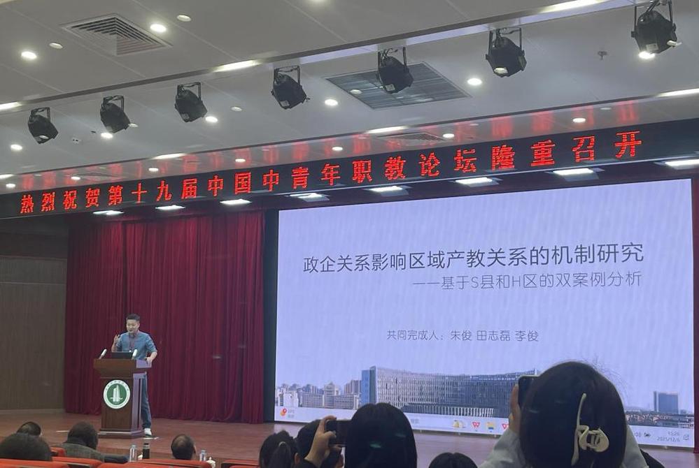 本次论坛聚焦于探讨教育强国建设背景下职业教育改革的重大理论与实践议题,为推动新时代职业教育高质量发展建言献策。陈春霞副教授受邀作为研究生论坛点评专家,对学术报告作出精彩点评。朱俊博士在论坛上作主旨报告《政企关系影响区域产教关系的机制研究》,与专家学者进行深入交流。2024级教育硕士石舒杨和尉新悦分别在研究生论坛上作“主体教育哲学向度下职教教师数字化教学素养形成困境及继续教育路径”“高职学生数字素养的类型特征与提升路径——基于高职学生数字素养的潜在剖面分析”的主题发言。